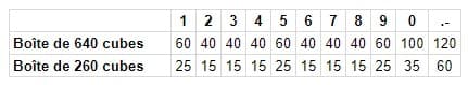 La boîte de 260 éléments permet la composition de 50 prix environ